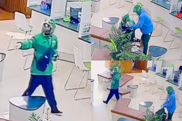 Chiều xảy ra sự việc, chị P.T.C đã bỏ 300 triệu đồng vào cốp xe máy để đến Phòng giao dịch Trà Bá – Ngân hàng TMCP Vietcombank để thực hiện giao dịch. Khi chị vừa dừng xe trước cổng trụ sở, mở cốp xe lấy tiền ra thì nghe tiếng báo động nên để tiền lại cốp xe, đứng im tại chỗ xem tình hình.