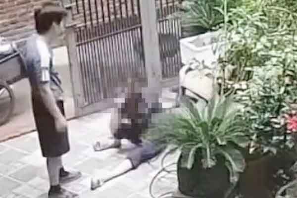 Ngay cả khi nạn nhân ngã xuống sân, người này vẫn kéo vợ trên mặt đất vào trong nhà rồi tiếp tục hành hung, trong khi người phụ nữ gần như không còn khả năng chống cự.
