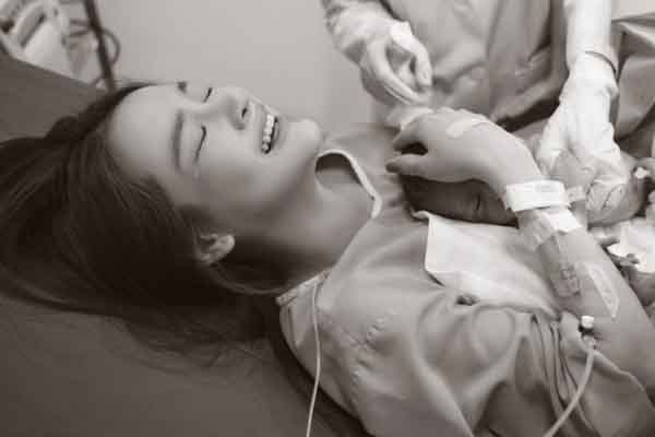 Trong những bức ảnh Nhã Phương chia sẻ có ảnh Trường Giang “facetime” lúc cô sinh và bật khóc vì không ở bên cạnh vợ thời điểm này.