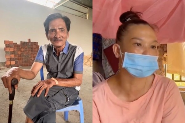 Vợ Thương Tín chăm sóc chồng trên giường bệnh thời điểm ông bị đột quỵ.