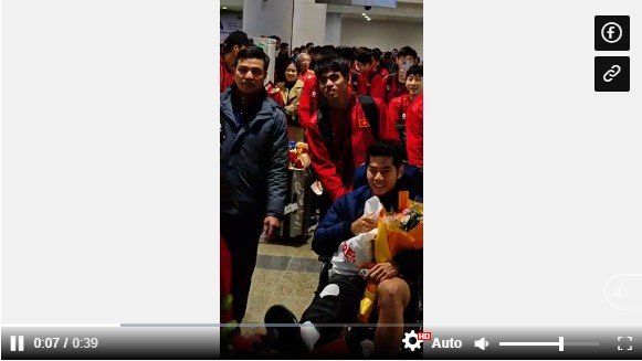 Có mặt tại sân bay từ sớm, bố mẹ của Hiểu Minh đã không giấu được sự xúc động. Nhìn thấy con trai trở về với đôi chân không còn lành lặn, mẹ của trung vệ này đã bật khóc nức nở ngay giữa đám đông. Dù vậy, Hiểu Minh vẫn giữ tinh thần lạc quan, anh liên tục mỉm cười đáp lại tình cảm của người hâm mộ trước khi được nhân viên an ninh hỗ trợ đưa lên xe bus của đội.