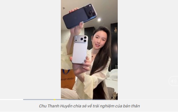 Tuy nhiên, điều khiến dân tình chú ý hơn cả chính là màn đánh giá thẳng thắn của Chu Thanh Huyền về “siêu phẩm” iPhone 17. Cô nàng cho biết: “Còn với Huyền khi mà trải nghiệm chiếc iPhone bản 2T này thì Huyền thấy cũng bình thường, quay cũng bình thường, thậm chí còn xấu hơn máy Huyền đang dùng. Và cái độ pin của nó cũng bình thường nốt, nhanh hết”.
