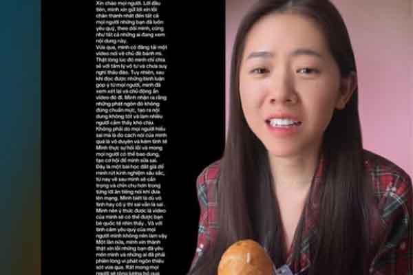 Ngày 4/4, TikToker H.L. gửi lời xin lỗi đến cộng đồng sau khi đăng tải video chê bánh mì gây tranh cãi. Cô thừa nhận video được thực hiện với tâm thế hời hợt, chưa suy nghĩ thấu đáo, dẫn đến những phát ngôn kém duyên và thiếu tinh tế.