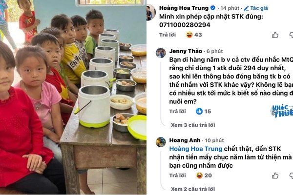 Đúng 22h, Hoàng Hoa Trung đã đăng bài thông báo tạm thời đóng băng tài khoản dự án Nuôi em để hỗ trợ minh bạch thông tin.