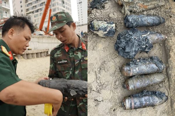 Khi trục vớt xe tăng trồi lên ở bờ biển Quy Nhơn, lực lượng chức năng phát hiện nhiều súng, đạn pháo, xương và mảnh vải, chiều 29/4.