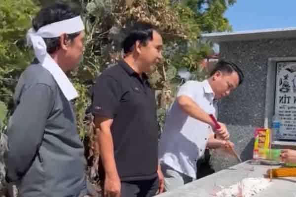 Không chỉ đến thắp hương tại chùa, MC Quyền Linh còn được nhạc sĩ Tô Hiếu, người thân cố nghệ sĩ dẫn ra thăm mộ và thắp hương cho tài tử ” Biệt động Sài Gòn “. Hành động vượt hàng trăm km tới thắp hương cho đồng nghiệp cũ của MC Quyền Linh khiến nhiều khán giả theo dõi anh xúc động.