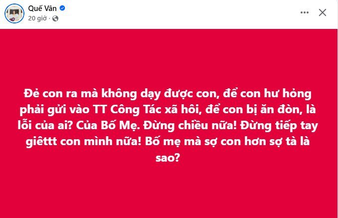 Quế Vân gây tranh cãi khi nhận xét: ‘Đ:ẻ con ra mà không dạy được con, để con h:ư hỏ:ng phải gửi vào TT Công Tác xã hôi, để con bị ăn đ:òn, là lỗi của bố mẹ’