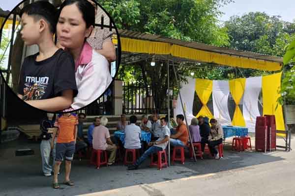 Bên di ảnh chồng, chị Nguyễn Thị Thanh Thúy (34 tuổi) nhiều lần bật khóc, gần như khuỵu xuống vì không chịu nổi cú sốc. Hai con nhỏ bám chặt lấy mẹ, liên tục hỏi: “Cha đi đâu vậy mẹ?”, khiến những người có mặt không cầm được nước mắt. Người mẹ chỉ biết ôm con, nghẹn ngào không thể trả lời.