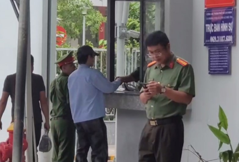 Hình ảnh ca sĩ Khánh Phương có mặt tại trước trụ sở Công an TP Hồ Chí Minh sáng nay 25/9.
