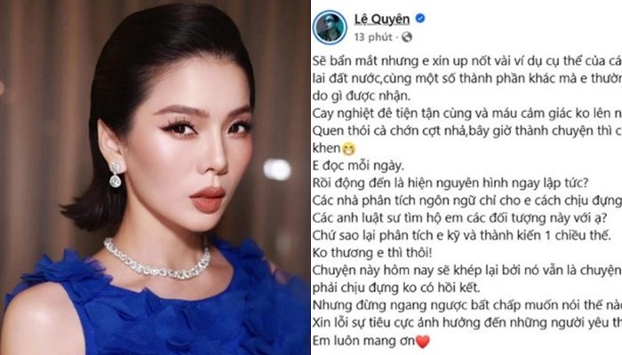Sau khi bị chỉ trích vì phát ngôn văng tục, Lệ Quyên tiếp tục đăng tải trên trang cá nhân bài viết khẳng định mọi việc đều có lý do của nó.