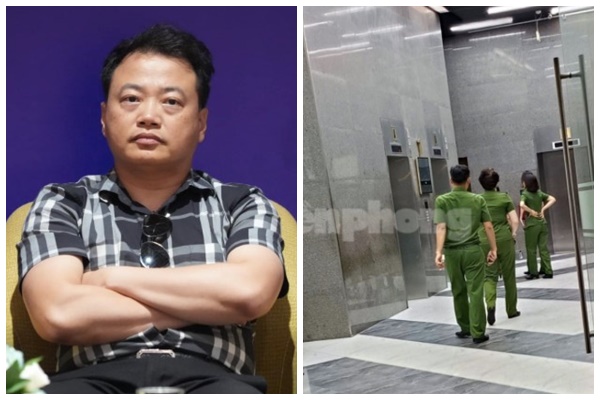 Công an xuất hiện tại toà nhà được cho là nơi nơi đặt trụ sở công ty của Shark Bình. Ảnh: Phú Hiếu