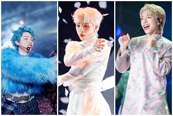 Đức Phúc biến hóa trên sân khấu – lúc thanh lịch với suit, khi lại ngầu với jumpsuit da, ngộ nghĩnh với áo cánh thiên thần, bốt đính lông xù. Dù chỉ cao 1,68 m, dáng người nhỏ bé, ca sĩ vẫn có thể mặc trang phục phối nhiều layer – phong cách nhiều người e ngại. Anh cũng đổi màu tóc liên tục với xanh bạc hà, hồng, bạch kim.