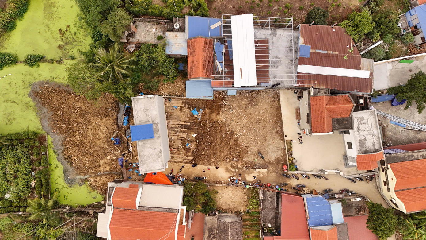 Hình ảnh ngôi nhà của ông Hữu đã được di chuyển về đúng vị trí nhìn từ trên cao . (Ảnh: Tiền Phong)
