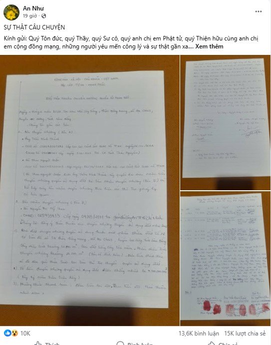 Mới đây, một bài đăng từ tài khoản Facebook “An Như” bất ngờ xuất hiện và nhanh chóng lan truyền trên mạng xã hội. Bài viết này được cho là chia sẻ nội dung từ sư thầy Thích Nhuận Đạt, trong đó tố ngược chị Tym và kể lại toàn bộ sự việc theo một góc nhìn khác khiến nhiều người không khỏi ngỡ ngàng.
