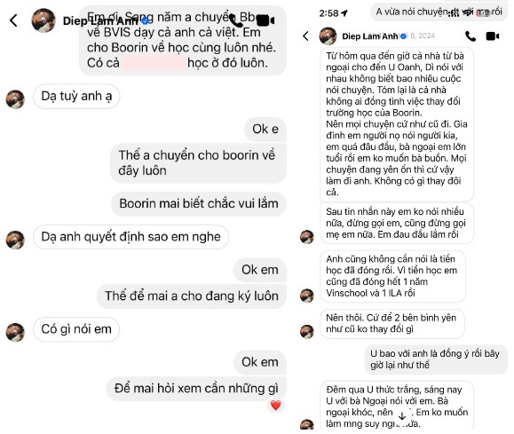 Đức Phạm tung tin nhắn tố Diệp Lâm Anh đồng ý cho con chuyển trường để học cùng em trai nhưng sau đó thất hứa