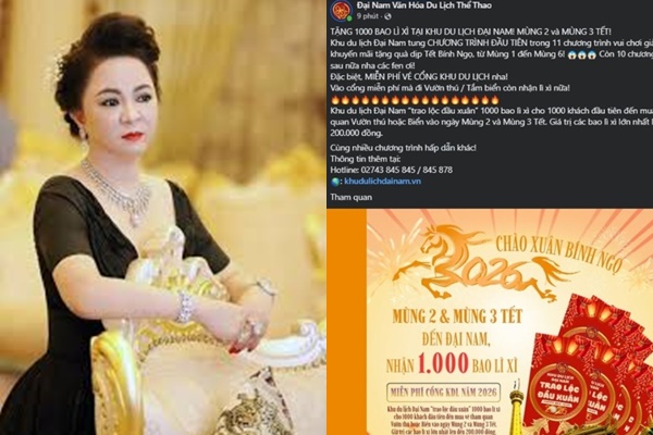 Mới đây, Khu du lịch Đại Nam của bà Nguyễn Phương Hằng và ông Huỳnh Uy Dũng gây chú ý khi có thông báo ngay trong tháng đầu tiên của năm 2026.
