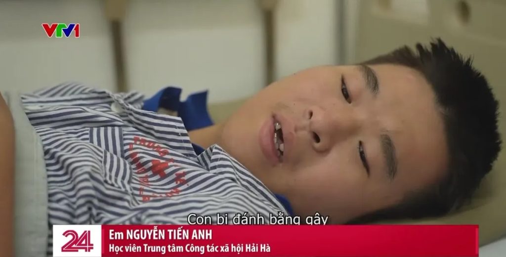 Theo lời Tiến Anh, em bị đánh bằng gậy, đánh vào tay, nhưng không rõ lý do. Gia đình cho biết đã đóng 8 triệu đồng mỗi tháng, song trong suốt 4 tháng, chỉ được gọi điện cho con hai lần và không hề biết con thường xuyên bị bạo hành. Phụ huynh chia sẻ rằng trung tâm không cho gặp con, liên tục thông báo cháu ngoan, khỏe mạnh, khiến gia đình tin tưởng. Khi được gọi điện, cháu chỉ khóc. Hiện sức khỏe và tinh thần của cháu có biểu hiện sa sút, lúc nhớ lúc quên.