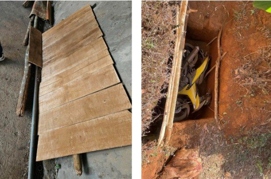 Theo báo Người Lao Động, liên quan đến vụ cướp ngân hàng Vietcombank tại Phòng giao dịch Trà Bá, Công an tỉnh Gia Lai vừa phát đi thông báo quan trọng về các vật chứng mới thu thập được. Tại khu vực nhóm đối tượng phi tang phương tiện, lực lượng chức năng đã phát hiện nhiều tấm ván gỗ được dùng để ngụy trang hố chôn xe máy.