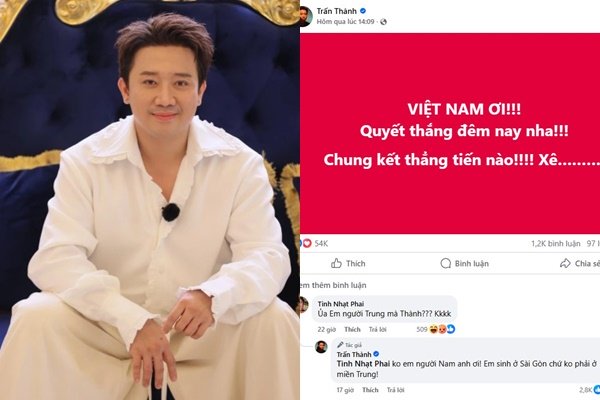 Trấn Thành đăng status ủng hộ đội tuyển Việt Nam nhưng bị mỉa mai là người Trung và màn đáp trả khéo léo không mất lòng ai.