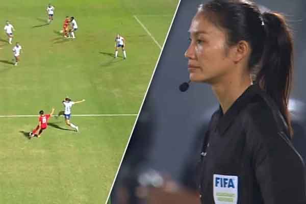 Trọng tài bắt lỗi việt vị dù Nguyễn Thị Bích Thùy đứng trên hai cầu thủ Philippines, khiến Việt Nam mất oan bàn thắng ở chung kết bóng đá nữ SEA Games 33, tối 17/12.