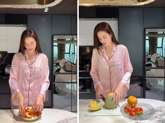 Mới đây trên trang TikTok cá nhân, hoa hậu Đỗ Thị Hà đăng tải clip thực hiện món salad dâu tây đang hot trên mạng nhiều ngày nay, song điều dân tình chú ý hơn cả là lời thoại của Viết Vương