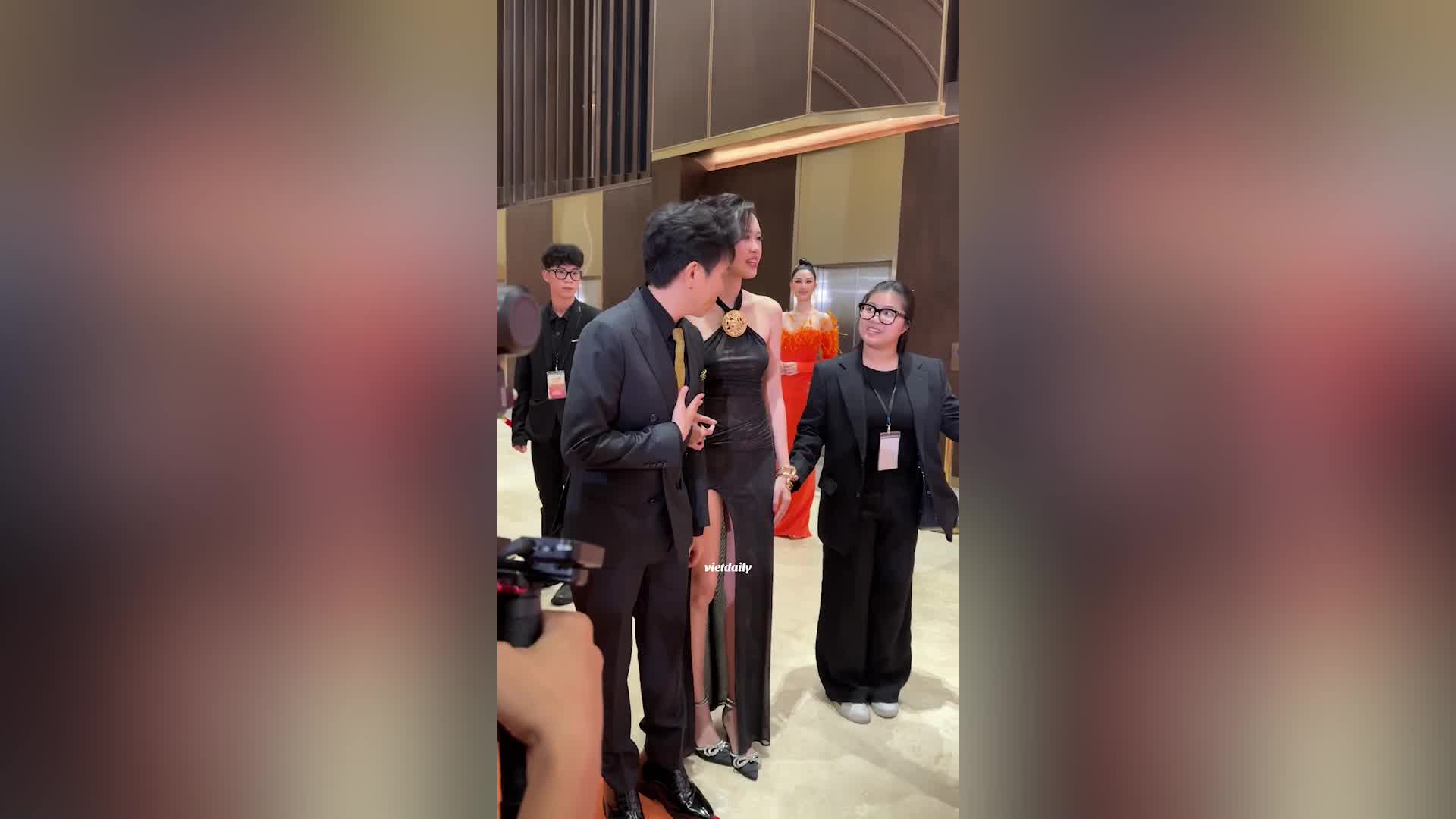 Tài khoản mạng xã hội của vợ chồng Anh Phạm hiện cũng đang nhận về nhiều bình luận tiêu cực từ khán giả về sự cố xảy ra ở thảm đỏ. Trước ồn ào, Anh Đức đã lên tiếng bênh vực bà xã.