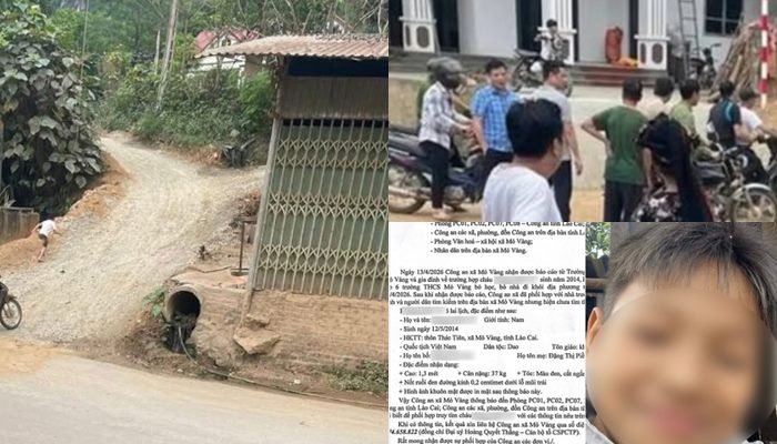 Trước đó, cháu P.X.A. được gia đình xác định mất tích từ ngày 9/4. Sau nhiều ngày tìm kiếm không có kết quả, đến ngày 13/4, gia đình cùng nhà trường đã trình báo sự việc tới Công an xã Mỏ Vàng.
