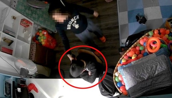 Camera ghi cảnh cháu bé bị người phụ nữ chửi bới, bắt đứng cúi mặt, không được ngồi. Ảnh: Cắt từ clip