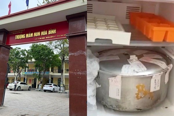 Theo bà Nguyễn Thị Minh Khoái, Hiệu trưởng Trường Mầm non Hòa Bình, phần thịt xay chưa sử dụng trong ngày 25/3 đã được cho vào túi nilon, đặt trong nồi và niêm phong với sự chứng kiến của nhiều người, sau đó bảo quản trong ngăn đông tại phòng làm việc.
