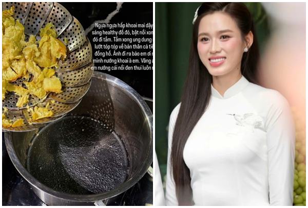 Mới đây nhất, trên story cá nhân, Hoa hậu Đỗ Hà đã đăng tải hình ảnh ghi lại “hiện trường” một pha bếp núc đầy bất ổn. Theo đó, nàng hậu vào bếp trổ tài hấp khoai để ăn sáng healthy, song đáng nói lại là màu sắc đen thui cùng mùi khét lẹt của món ăn.