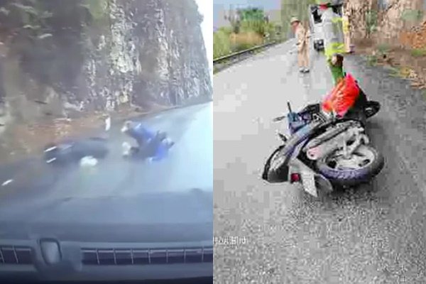 | Ô tô vượt ẩu chèn qua hai người đi xe máy. |